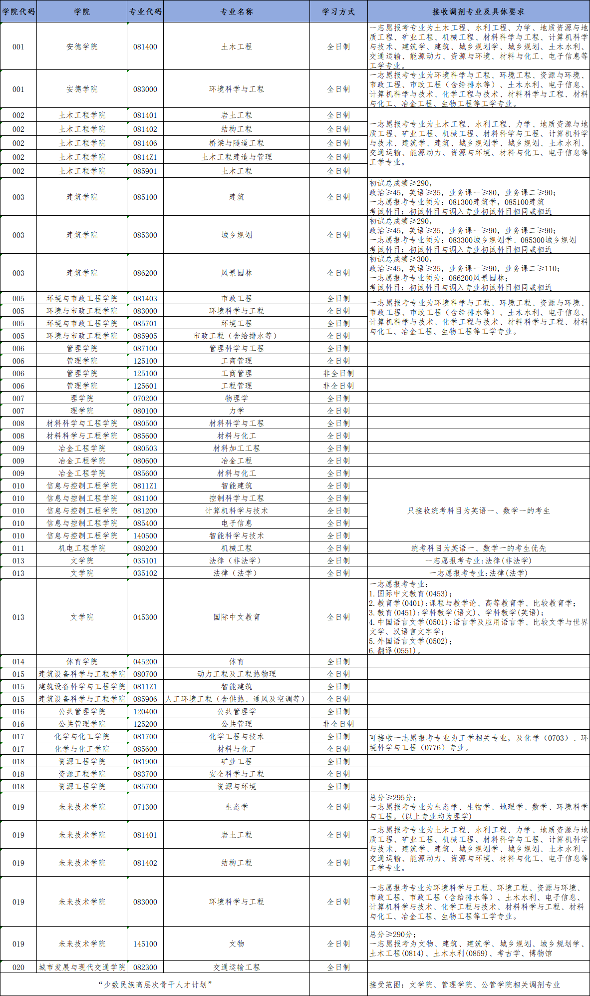 8.报考“少数民族高层次骨干人才计划”的考生不得调剂到该计划以外录取;未报考的不得调剂到该计划录取。