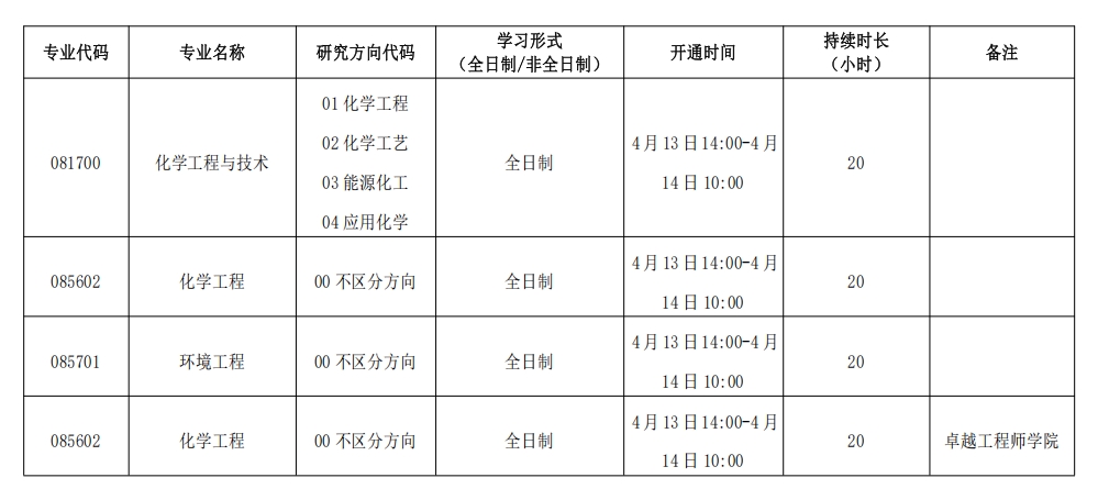 各位考生: 现将化学化工学院2026年硕士研究生调剂系统(调剂第三批)开通时间予以公布,请有意愿调剂至我院相关专业的考生在规定时间内申请。 复试时间计划拟定于4月14日下午14:00开始。 调剂咨询电话:029-88382693 调剂咨询QQ群:776466246