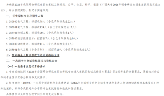广西大学电气工程学院2026年硕士研究生拟复试名单公示-一志愿对比以上数据:电气工程、储能技术、控制工程、清洁能源技术、电气工程(非全日制)一志愿上线人数不足推荐使用51考研网电脑站查看信息更方便 www.51kywang.com对比以上数据,结合自己的情况,积极准备,如需删除请联系电话18137782070温馨提示:登录51考研网电脑站官网,查看信息更方便