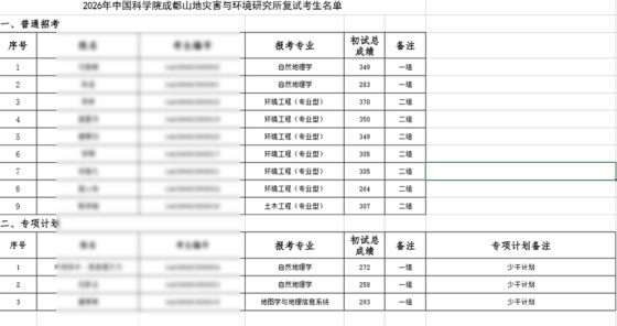 中国科学院成都山地所2026年招收攻读硕士学位研究生复试名单及安排招生计划:https://admission.ucas.ac.cn/info/ZhaoshengDanweiDetail/9e780c52-baf5-4020-b453-bc4510579559/8006312026中国科学院、水利部成都山地灾害与环境研究所(简称成都山地所)成立于1966年,是我国唯一专门从事山地综合研究的国立研究机构。成都山地所拥有山地自然灾害与工程安全重点实验室(中国科学院)、中国科学院山地灾害与地表过程重点实验室、中国科学院山地表生过程与生态调控重点实验室和山区发展研究中心、数字山地与遥感应用中心5个研究学科单元,设有