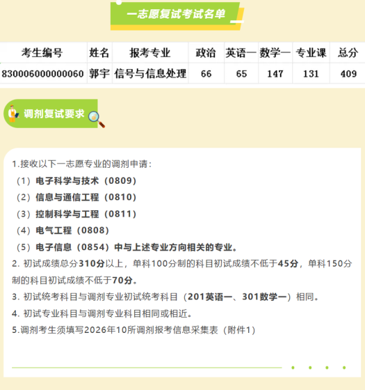 我校2026年硕士研究生招生部分学科/专业尚有空缺名额,欢迎符合条件且优秀的考生申请调剂。申请者须满足调剂专业一区(A类)国家复试分数线基本要求;报考“退役大学生士兵”专项计划的考生,须符合我校该专项计划的复试分数线。调剂工作将严格按照《中国民用航空飞行学院2026年硕士研究生招生调剂录取办法》执行。现将我校2026年拟接收调剂考生的学科/专业基本信息公告如下:一、硕士研究生招生拟接收调剂学科/专业信息汇总学院代码及名称专业代码、名称及类型联系电话联系邮箱001飞行技术学院140500智能科学与技术(学术学位)陈老师:1
