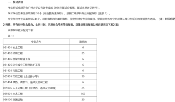 一、接收调剂基本信息我院接受调剂专业信息如下:接收调剂专业代码及名称接收调剂方向代码及名称拟调剂招生计划拟调剂复试名额0859土木水利69不分方向610注:具体调剂复试人数以实际接收调剂复试人数为准,具体调剂招生计划以实际录取人数为准。二、调剂要求(一)符合教育部和学校的调剂政策要求。(二)接受考生调剂的第一志愿专业范围:一志愿报考我校与土木水利相同或相近专业的优秀生源,优先接收报考0814土木工程、0815水利工程专业的考生。(三)初试科目与成绩要求:1.在报考专业和调剂专业,均达到我校复试基本分数线,且不得低于