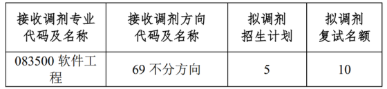 一、接收调剂基本信息 我院接受调剂专业信息如下:接收调剂专业代码及名称接收调剂方向代码及名称拟调剂招生计划拟调剂复试名额083001环境科学69 不分方向48083002环境工程69 不分方向24 注:具体调剂复试人数以实际接收调剂复试人数为准,具体调剂招生计划以实际录取人数为准。二、调剂要求 (一)符合教育部和学校的调剂政策要求。 (二)接受考生调剂的第一志愿专业范围:优先接收一志愿报考我校计算机科学与技术(代码:081200)、计算机技术(代码:085404)和环境工程(代码:085701)等相同或相近专业的优秀生源。 (三)