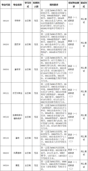 根据2026年研究生招生工作安排,我院作物学等学科及学位点有调剂名额。欢迎各位考生报考。一、调剂要求(一)调剂考生初试成绩(总分和单科最低分)必须达到报考专业所在的学科门类A类考生的国家分数线要求。(二)原则上只接收相同专业或相近专业的考生(具体见下表)。(三)退役大学生士兵计划考生按照学校要求招收。二、相关学科及学位点拟调剂信息与复试方式如下:备注:学校和学院保留调整招生计划的权利三、调剂系统开放时间4月8日凌晨00:00-4月8日中午12点(不低于12小时)后续是否继续开放系统及开放时长,视申请人数情况而定。四