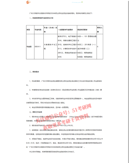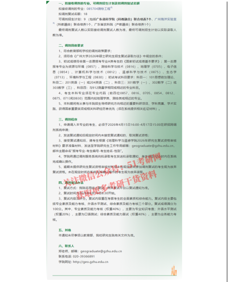 华南先进光电子研究院是华南师范大学在整合已有相关优势资源、引进海外高层次人才和创新科研团队、吸收国内外先进管理经验的基础上,以进驻大学城校区理5栋(1.5万平方米)的部分研究团队为主体组建成立的科研、教学单位,所依托的光学学科为国家重点学科。现为国家“双一流”物理学学科建设、广东省高水平大学建设参与单位。2026年华南先进光电子研究院硕士招生部分专业需接收调剂生。一、接受调剂专业专业学位硕士:光电信息工程(085408)专业代码专业名称学习方式统考科目要求085408光电信息工程全日制第一单元: 101思想政治理论;第二