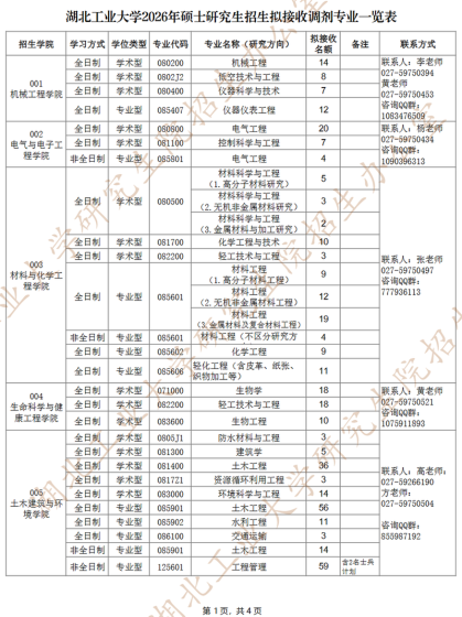 根据教育部《2026年全国硕士研究生招生工作管理规定》《关于做好2026年全国硕士研究生招生复试录取工作的通知》等文件精神,结合工作实际,现将我校调剂相关事项公告如下:一、接收调剂专业招生学院调剂专业调剂名额学习方式联系方式药学院001105500药学大量(含少量退役士兵计划)全日制阮老师0715-8151311师范学院002045101教育管理少量全日制章老师0715-8338145045103 学科教学(语文)少量全日制045104 学科教学(数学)少量全日制045102 学科教学(思政)少量全日制045108 学科教学(英语)少量全日制045115小学教育较多全日制电子与