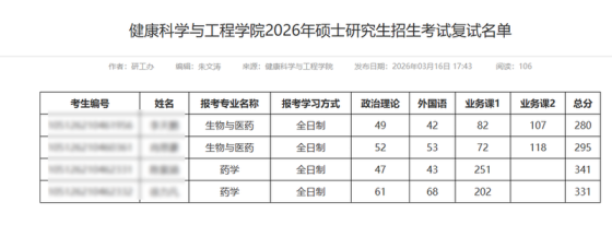 原文链接:https://znzz.hubu.edu.cn/info/1009/1712.htm 湖北大学智能制造学院2026年硕士研究生复试名单(一志愿)推荐使用51考研网电脑站查看信息更方便 www.51kywang.com对比以上数据,结合自己的情况,积极准备,如需删除请联系电话18137782070温馨提示:登录51考研网电脑站官网,查看信息更方便