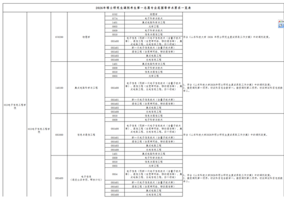 一、接收调剂专业专业代码专业名称研究方向名称学习方式备注083900网络空间安全不区分全日制085404计算机技术退役大学生士兵计划全日制085405软件工程不区分非全日制085404计算机技术(卓越工程师学院)科教产教协同育人专项全日制联培单位:山东产业技术研究院、山东蓝光软件有限公司、国家深海基地管理中心、康复大学、空天信息大学(筹)085405软件工程科教产教协同育人专项非全日制联培单位:以萨股份科技有限公司注意:调剂名额以教育部研招网调剂系统发布为准二、考生第一志愿专业范围等学术要求三、调剂程序1.待教育部研究生调剂系