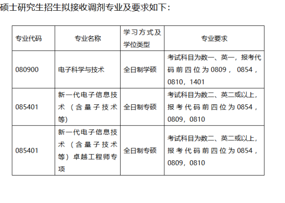热烈欢迎符合我校调剂要求的考生调剂到相关专业深造。现将我校2026年硕士研究生招生拟接受调剂相关事项公告如下。一、拟接受调剂学科专业招生培养单位专业代码专业(方向)名称学习方式一志愿报考专业要求人数化学化工与材料科学学院0856材料与化工(01材料工程)全日制优先级:材料与化工(0856)材料科学与工程(0805)化学工程与技术(0817)次优先级:化学(0703)材料科学与工程(0773)环境科学与工程(0776)药学(0780)纳米科学与工程(0789)机械工程(0802)光学工程(0803)冶金工程(0806)动力工程及工程热物理(0807)电子