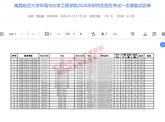 信息工程学院2026年硕士研究生一志愿考生复试名单公示南昌航空大学(10406)2026年硕士研究生招生专业目录对比以上数据,结合自己的情况,积极准备,如需删除请联系电话18137782070温馨提示:登录51考研网电脑站官网,查看信息更方便