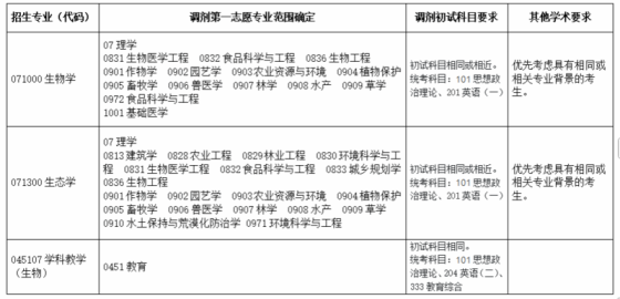 调剂规则一志愿上线生源未达到招生规模的专业(方向),按照国家相关政策择优开展调剂录取工作。调剂考生除须满足学校制定的调剂考生遴选基本要求外,还需同时符合对应专业的调剂条件,具体如下:1.化学专业(1)仅接收一志愿0703化学、0707海洋科学、0710生物学、0773材料科学与工程、0776环境科学与工程、0777生物医学工程、0780药学、0788智能科学与技术、0789纳米科学与工程专业、0817化学工程与技术、0830环境科学与工程、0832食品科学与工程、0856材料与化工、0857资源与环境、0860生物与医药专业的考生,且初试统考科目须包含英语一