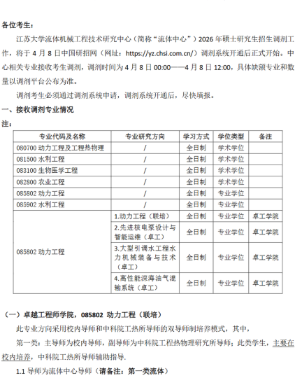 根据我校2026年硕士研究生复试录取工作安排及招收攻读硕士学位研究生调剂复试录取办法,现将我校2026年硕士研究生调剂复试工作相关安排公告如下:一、我校在“全国硕士生招生复试调剂服务系统”(以下简称“调剂服务系统”)中相关专业调剂安排如下:1.首批次开启时间:2026年4月8日0点-12点调剂专业:拟接收调剂的专业见附件1,具体以调剂服务系统公布为准。2.后续批次见后续通知。3.每次调剂服务系统开放持续时间不低于12个小时,调剂志愿锁定时间最多36小时。4.我校硕士研究生调剂复试方式原则上采用网络远程复试(电气工程及自动化学院