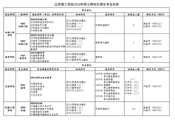 2026年硕士研究生招生考试学院复试名单及拟录取名单001船舶与海洋工程学院 010理学院002能源与动力学院 011外国语学院003机械工程学院 012生物技术学院004自动化学院 013张家港校区005计算机学院 014人文社科学院006经济管理学院 015马克思主义学院007材料科学与工程学院 016粮食学院008土木工程与建筑学院 017海洋学院009环境与化学工程学院江苏科技大学2026年硕士研究生招生专业目录对比以上数据: 一志愿上线人数不足推荐使用51考研网电脑站查看信息更方便 www