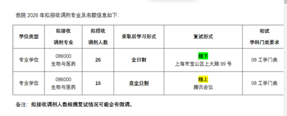 上海理工大学环境与建筑学院2026年全国硕士研究生招生接收调剂的专业见下表,具体开放时段请关注通知更新内容、以及中国研究生招生信息网调剂服务系统。环境与建筑学院2026年接收调剂专业一、调剂工作办法调剂基本条件和调剂工作流程,详见我校研究生招生网站发布的《2026年硕士研究生招生调剂工作办法》。网址内容请关注更新。二、调剂报名须知2026年全国硕士研究生招生“调剂意向采集系统”于3月30日开通,“调剂服务系统”将于4月8日开通。请密切关注“中国研究生招生信息网”复试调剂页面(http://yz.chsi.com.cn/yztj/)、我校研究生
