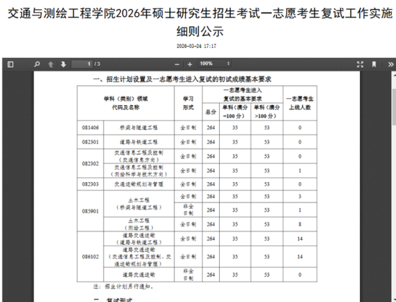 按照《教育部关于印发2026年全国硕士研究生招生工作管理规定的通知》(教学〔2025〕2号)、《关于做好2026年全国硕士研究生复试录取工作的通知》(教学司〔2026〕3号)、《关于做好辽宁省2026年全国硕士研究生招生复试录取工作的通知》(辽招考委字〔2026〕8号)、《大连交通大学2026年硕士研究生招生章程》等文件要求和有关会议精神,为做好我校2026年硕士研究生招生调剂工作,结合我校实际,特制定本工作办法。一、考生调剂基本条件1.初试成绩须符合第一志愿报考专业在调入地区的全国初试成绩基本要求,并符合调入专业的报考条件。2.初
