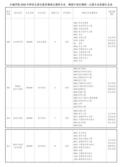 2026年运城学院电子信息招生调剂信息