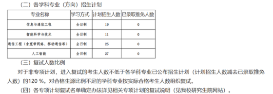 根据2026年全国硕士研究生招生考试考生进入复试的初试成绩基本要求,我院接收调剂专业及相关通知如下,欢迎广大优秀考生申请调剂到我院学习深造。一、接受调剂的专业2026年我院电子信息专业(专业代码0854),调剂数量共21名。复试工作采取差额形式,差额比例不小于150%。二、调剂条件申请调剂我院的考生,须符合下列条件:1.初试成绩(含加分)符合第一志愿报考专业在一区的国家分数线,并符合调入专业的报考条件。2.调剂考生第一志愿专业与调入专业相同相近,或初试科目与调入专业初试科目相同相近。3.初试全国统一命题科目应与调入专业
