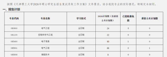 根据《天津城建大学2026年硕士研究生招生复试录取工作办法》,结合我院实际情况,制定本细则。一、调剂条件1.初试成绩要求。初试成绩须符合第一志愿报考专业在调入地区的全国初试成绩基本要求;退役大学生士兵计划分数线为总分不低于195分,单科线不限。2.接收调剂的第一志愿专业范围和初试科目。(1)机械(专业代码085500)调剂到该专业的考生第一志愿专业应与机械专业相同或相近,包括机械工程(专业代码0802)、机械(专业代码0855)、控制科学与工程(专业代码0811)、电气工程(专业代码0808)、船舶与海洋工程(专业代码0824)、能