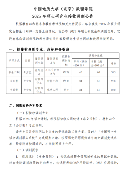 https://bm.cugb.edu.cn/yjsyzsb/c/2025-03-28/822747.shtml点击链接阅读调剂详情介绍,结合自己的情况,积极准备填报温馨提示:登录51考研网电脑站官网,查看调剂信息更方便
