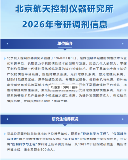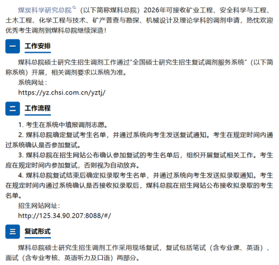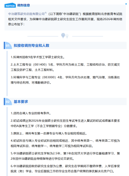 按照《教育部关于印发2026年全国硕士研究生招生工作管理规定的通知》(教学〔2025〕2号)、《关于做好2026年全国硕士研究生招生复试录取工作的通知》(教学司〔2026〕3号)等文件要求,北京市科学技术研究院城市安全与环境科学研究所(以下简称城安所)2026年硕士研究生招生有部分专业接受考生调剂,现将调剂相关事宜公布如下,请拟调剂考生及时关注城安所官方网站,提前做好调剂相关准备。一、单位情况城安所原名北京市劳动保护科学研究所,1955年底批准成立,原隶属于国家劳动部,是我国第一家经国务院批准成立的从事安全、环境与职业卫