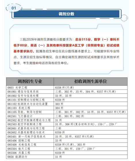 根据研究所2026年硕士研究生招生安排,拟接收部分调剂生源,欢迎优秀考生申请调剂至研究所学习深造。现将有关事项公告如下:一、调剂专业:车辆工程(080204)二、调剂要求:(一)总分不低于305分,单科(满分=100分)不低于50分,单科(满分=150)不低于70分。(二)调入专业与第一志愿报考专业相同或相近,且在同一学科门类范围内;初试科目与调入专业初试科目相同或相近,其中初试全国统一命题科目应与调入专业全国统一命题科目相同;(三)人工智能、软件工程、控制科学与工程、机械工程及其自动化、电气工程、车辆工程、自动化、计算