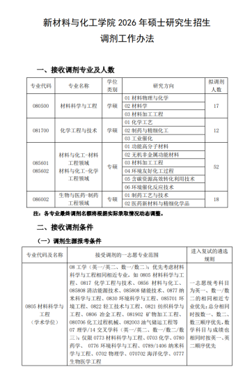 石科院严格按照教育部、北京教育考试院工作要求规范开展调剂工作。2026年我院0856材料与化工、081701化学工程、081702化学工艺、081704应用化学、081705工业催化专业合计可招收约40名调剂考生。3月27日调剂系统意向采集功能开通,我院将及时发布调剂办法和准确的调剂信息,有意愿的同学可按照调剂办法申请我院。调剂系统正式开通后,4月8日至9日我院同步启动调剂复试工作。复试地点、考核方式、调剂要求等信息参见《石科院2026年硕士研究生招生复试录取办法》。请同学们关注研招网院校信息,另可通过官网http://ripp.sinopec.com/ripp/或官