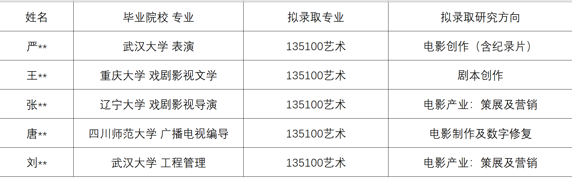 2021级推荐免试生拟录取名单