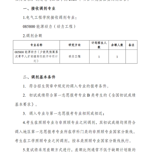 5.报考“退役大学生士兵计划”的考生,申请调剂到普通计划,其初试成绩须达到调入地区相关专业所在学科门类的国家分数线。符合条件的,可按规定享受退役大学生士兵初试加分政策。报考普通计划的考生,若符合“退役大学生士兵计划”报考条件,可申请调剂到该专项计划,其初试成绩须符合我院确定的“退役大学生士兵计划”考生的初试成绩要求。