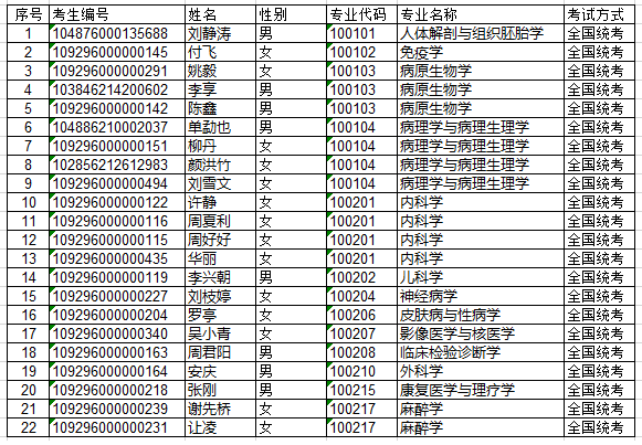 湖北医药学院2016级硕士研究生录取名册公示