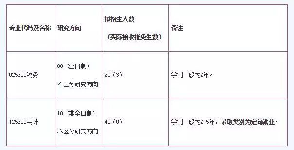 二、调剂资格 1.须符合我院《2017年招收攻读硕士学位研究生章程》中规定的调入专业的报考条件。 注意:申请调入会计(非全日制)的考生,须在2017年硕士研究生考试报名现场确认截止日期前取得国家承认的大学本科毕业学历、并具有大学本科毕业后2年及以上(自毕业后至2016年11月)工作经验,同时,应在录取前需与工作单位及我院签署定向培养三方协议,其档案、人事、户口、工资关系仍留在原工作单位。 2.申请调入税务(全日制)的考生:应为报考经济学类相关专业(专业代码为02开头)、会计学专业(120201)的学术型硕士研究生,或报考税务、金融的专业硕士研究生,且初试成绩(总分和单科)达到今年全国A类地区相应的最低复试分数线及我院调入专业初试成绩基本要求; 申请调入会计(非全日制)的考生:应为报考会计(125300)、审计(025700)的专业硕士研究生,且初试成绩(总分和单科)达到今年全国A类地区相应的最低复试分数线及我院调入专业初试成绩基本要求。 3.外国语语种为英语,且大学英语四级成绩425分以上。 4.身体健康状况符合国家规定的体检标准。 5.考生的学历情况与申请调剂学科符合国家其他有关要求。 三、调剂程序 1.预报名 在国家复试分数线公布前,请下载并填写“上海国家会计学院2017年硕士研究生调剂申请表”(请点击下载),并发送至mpacc@snai.edu,邮件主题格式为:“调入专业+姓名+初试成绩+原报考专业+原毕业学校”(如:“税务+张三+380+金融硕士+上海财经大学”)。邮件内容请务必写清您的联系电话,并保持电话畅通。 2.正式报名 请按国家规定的调剂时间及时登录“中国研究生招生信息网”(http://yz.chsi.com.cn)调剂系统按要求填写调剂志愿信息,并完成网站要求的所有调剂流程(特别提醒:按教育部要求,考生调剂必须通过“中国研究生招生信息网”调剂系统,否则调剂无效)。 3.复试通知 我院将根据考生专业背景、初试成绩及提交调剂申请的顺序,在“中国研究生招生信息网”调剂系统向符合要求的考生进行网上确认并予以通知,考生需在网上点击同意参加复试。复试时间拟安排在3月下旬至4月上旬,复试方案将另行公告。 4.待录取 我院将在“中国研究生招生信息网”调剂系统中通知拟录取的考生,请考生及时在网上确认。若考生在规定时间内没有做出明确答复,学院将取消其待录取资格。 5.正式录取 调剂结束后,所有待录取考生须通过教育部录检,才可正式获得录取资格。 四、其他相关政策和信息 1.复试方法与科目 具体内容以当年复试公告为准。一般为笔试和面试相结合的方式,主要内容包括思想政治理论、微观经济学、会计学、外语、专业知识及综合能力。考生可参考我院《2017年招收攻读硕士学位研究生章程》(http://master.snai.edu/master/info_1680.aspx?itemid=28685)、《上海国家会计学院2017年硕士研究生招生专业目录》(http://master.snai.edu/ssszsKD/info_327.aspx?itemid=28683)及往年复试公告中的相关内容。 2.学费与奖助学金 根据国家和上海市的政策,我院制定税务(全日制)硕士研究生学费总额为48000元(人民币),会计(非全日制)硕士研究生学费总额为108000元(人民币)。 关于全日制硕士研究生的奖助体系,考生可参考《上海国家会计学院全日制硕士研究生新生奖学金评定办法》(http://master.snai.edu/glgdSR/info_340.aspx?itemid=29285)和《上海国家会计学院研究生奖学金管理暂行办法(2016年修订版)》(http://master.snai.edu/glgdSR/info_340.aspx?itemid=29386)等内容。关于非全日制硕士研究生的奖助政策尚在制定中。研究生还可通过申请勤工助学岗位工作获得资助。 3.咨询方式 上海国家会计学院研究生部招生办公室(电话:021-69768051;邮箱:mpacc@snai.edu),请有意调剂到我院就读的考生密切关注研究生部网站(http://master.snai.edu)及“中国研究生招生信息网”相关信息。 4.注意事项 本公告如有与国家2017年硕士研究生招生调剂政策不符之处,以国家政策为准。