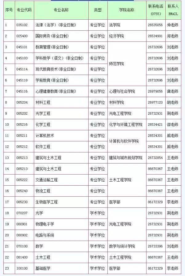 微信关注公众号 51考研网 深圳大学2017年有部分专业接收调剂,具体调剂需求待国家线公布一周左右后,以我校公布的《深圳大学2017年硕士生招生复试分数线及调剂需求》为准。欢迎符合我校调剂要求的考生申请调剂我校。 一、调剂要求 根据我校高水平大学建设目标,原则上只接收全日制本科毕业于具有推荐优秀应届本科毕业生免试攻读硕士研究生资格院校(不含独立学院)的优质调剂生源报名。学术学位可以向专业学位调剂,专业学位不可向学术学位调剂。 其他调剂基本条件说明如下: ①符合《深圳大学2017年硕士生招生简章》中规定的调入专业报考条件。 ②初试成绩符合第一志愿报考专业A类考生的《国家初试成绩基本要求》。 ③调入专业与第一志愿报考专业相同或相近。 ④考生初试科目应与调入专业初试科目相同或相近,其中统考科目原则上应相同。 ⑤第一志愿报考工商管理、公共管理、工程管理、旅游管理、会计、图书情报、审计专业学位的考生可相互调剂,但不得调入其他专业,其他专业的考生也不得调入以上7个专业。 第一志愿报考法律硕士(非法学)专业的考生不得调入其他专业,其他专业的考生也不得调入该专业。 报考临床医学类专业学位硕士研究生的考生可按相关政策调剂到其他专业,报考其他专业(含医学学术学位)的考生不可调剂到临床医学类专业学位。 二、接收调剂专业 参考2016年国家线,预计我校2017年需要接收调剂生的专业有: